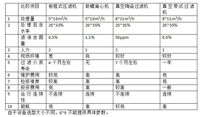 目前應(yīng)用在該工藝環(huán)節(jié)的主要設(shè)備有板框式壓濾機(jī),離心機(jī),陶瓷過濾機(jī)和真空皮帶脫水機(jī)等。