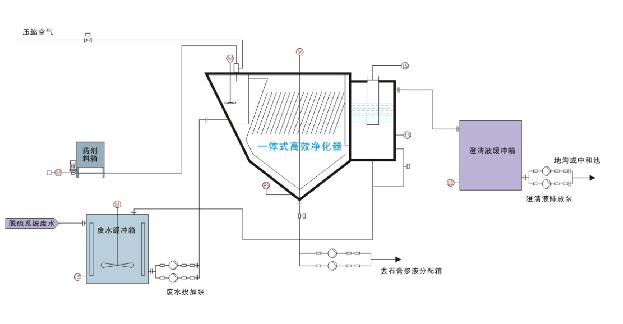脫硫廢水“一步法”達標排放工藝的核心設(shè)備就是一體式高效凈化器。